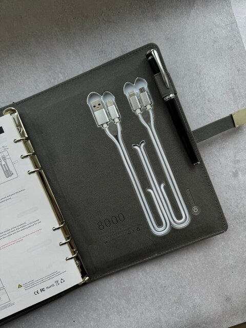Smart блокнот London в сірому кольорі павербанк 8 000 mAh
