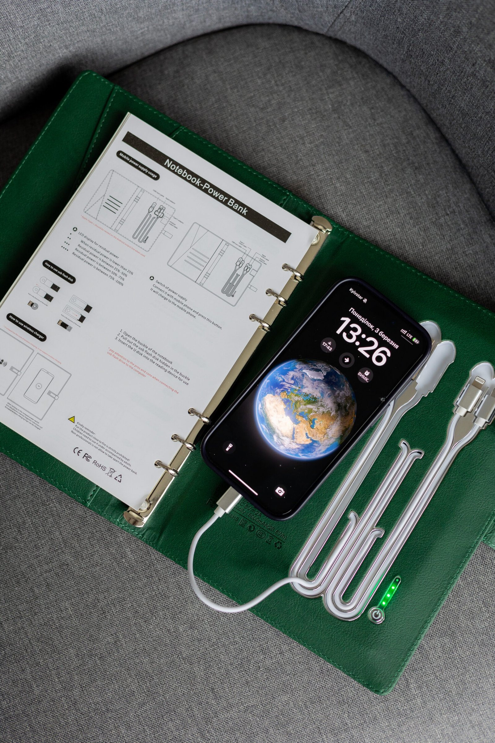 Smart блокнот London в зеленому кольорі павербанк 8 000 mAh