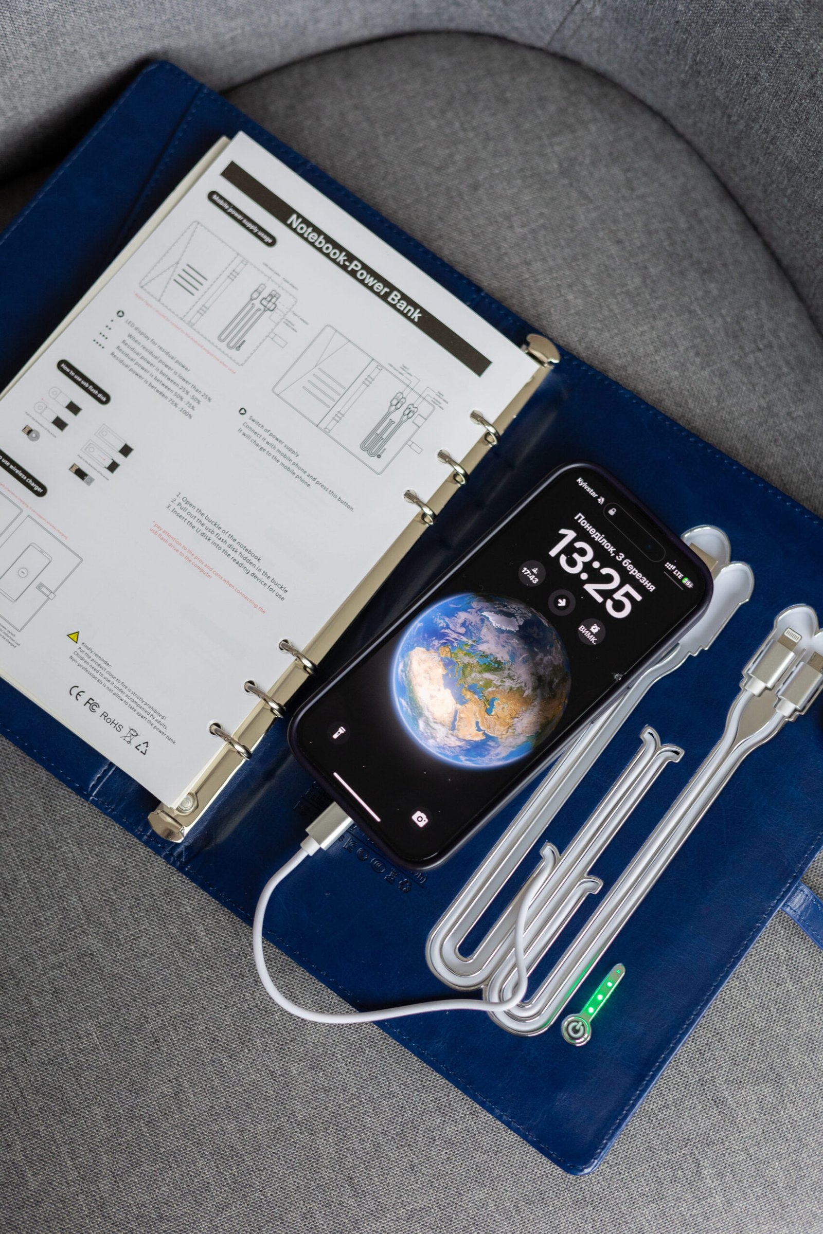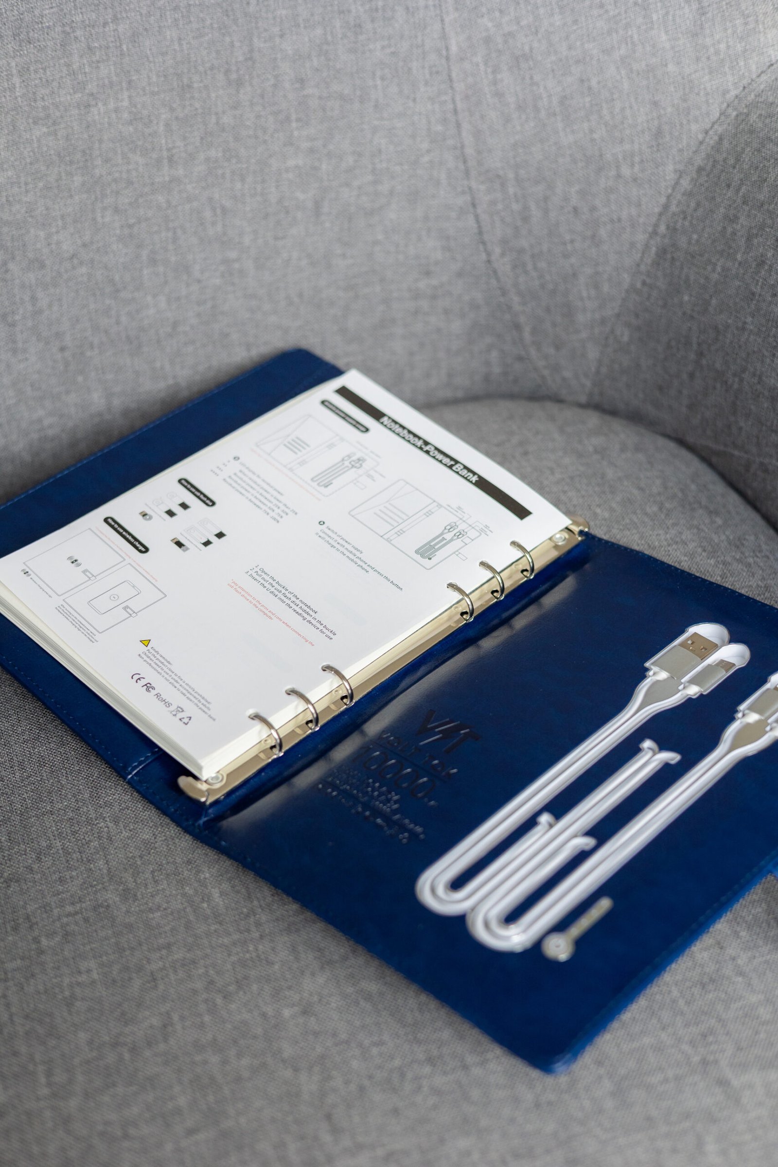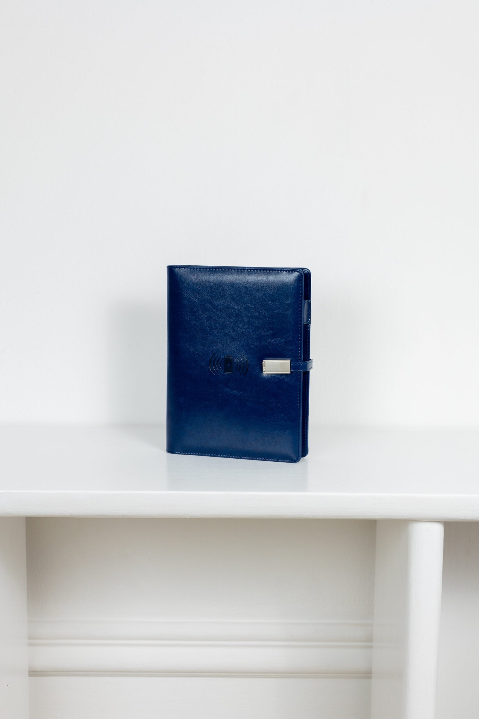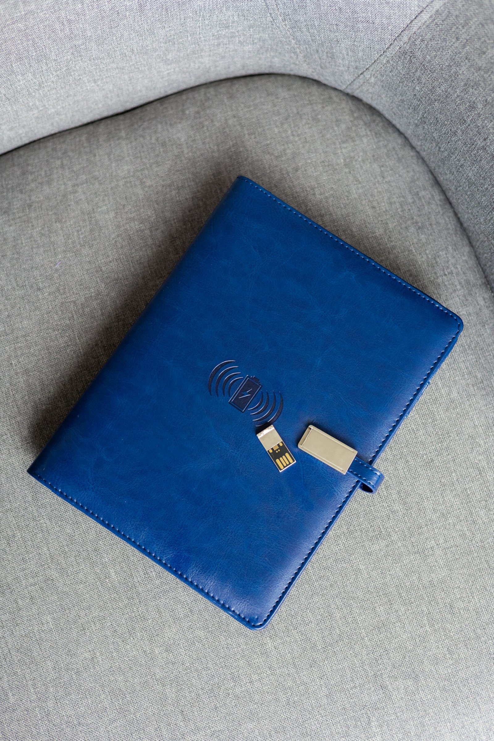 Smart блокнот з зарядкою Еко-шкіра глянець в синьому кольорі павербанк 10000 mAh