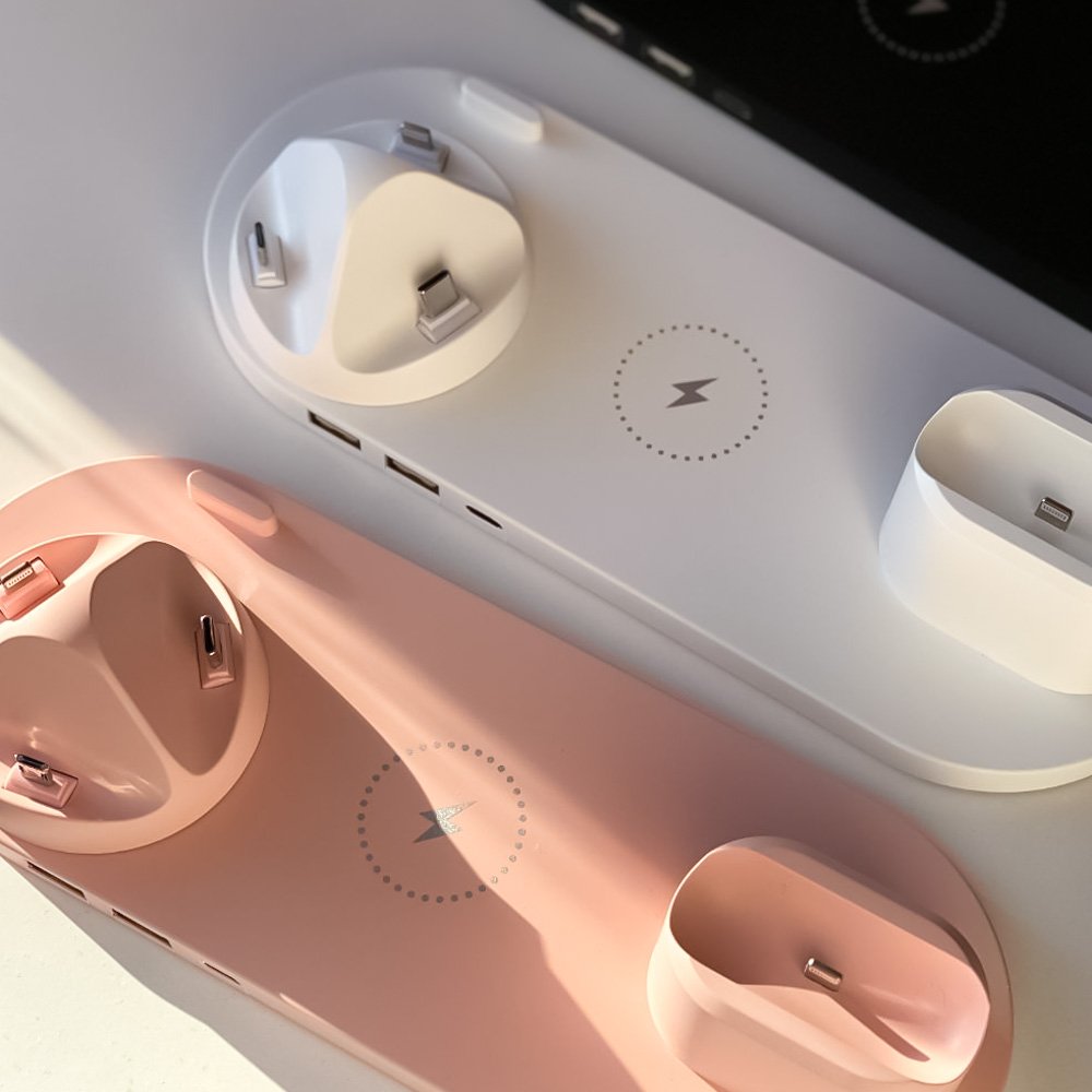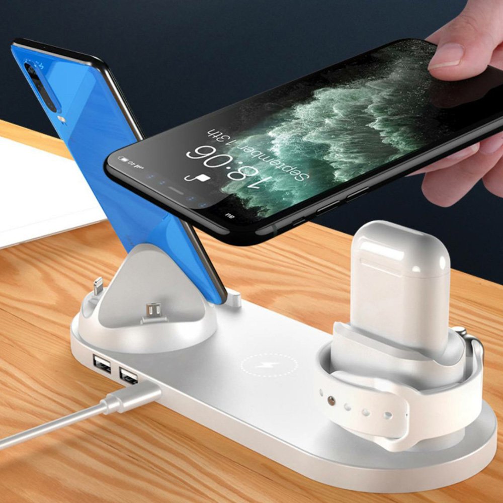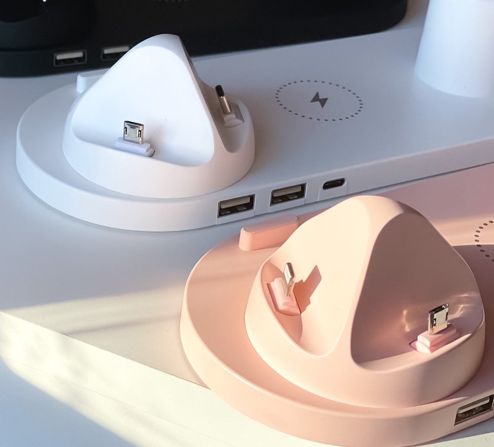 - Багатофункціональна станція з інтерфейсами iPhone/Micro USB/Type-C для будь-яких пристроїв до 5 одночасно;